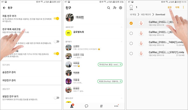 스마트폰에서 녹취파일을 전송하고자 하는 경우에는 아래를 참고하십시오.